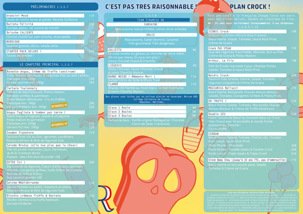 Alors tous les jolis plats que tu vois au dessus ne sont pas forcément à la carte toute l'année ...